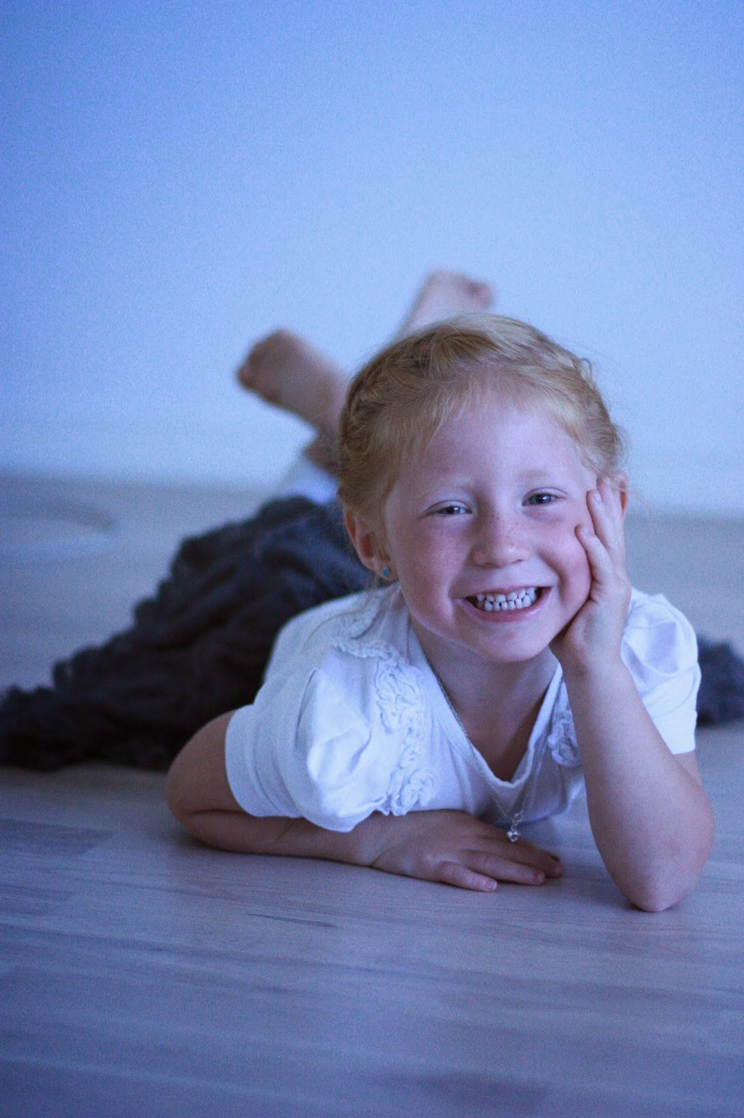 Snart fire år. På overnatting hos Tante. Nygredd hår, og kledd for å gå i bursdag. Bare noen bilder først sa Tanten...